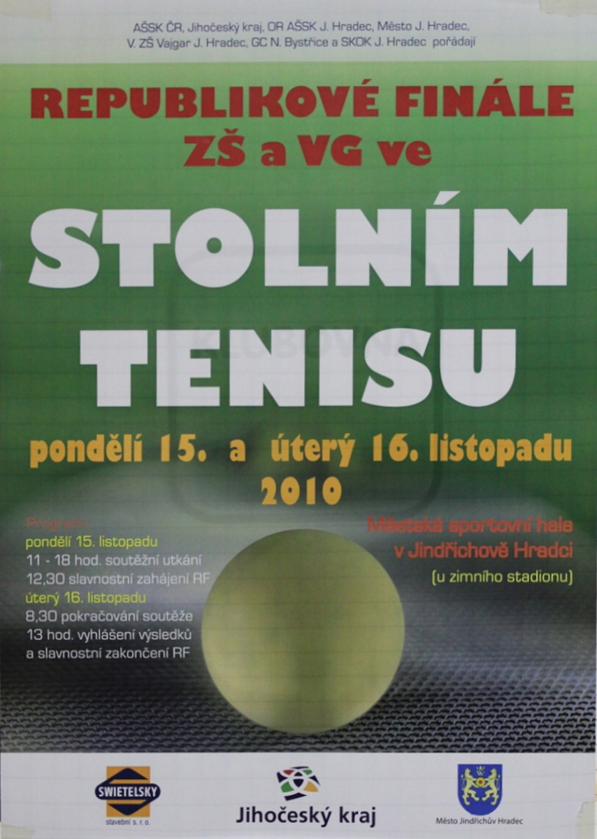 Republikové finále ve stolním tenisu dívek kategorie IV Dalšího velkého úspěchu dosáhla naše dvojice dívek z kvarty ve stolním tenisu dívek kategorie IV. Po vítězství v krajském kole naše hráčky postoupily do republikového finále, které se konalo 15. a 16. listopadu v Jindřichově Hradci.